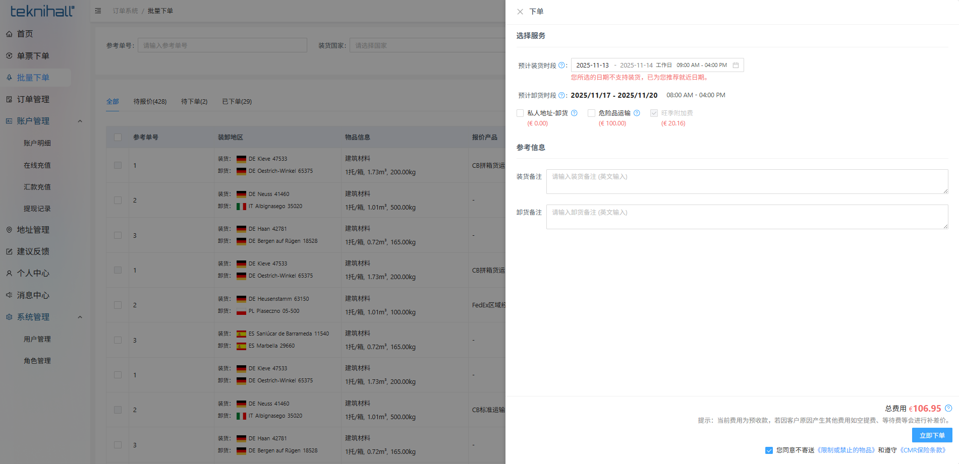 - 单据处于系统询价中状态,请稍等1-2分钟后刷新数据查看最新报价